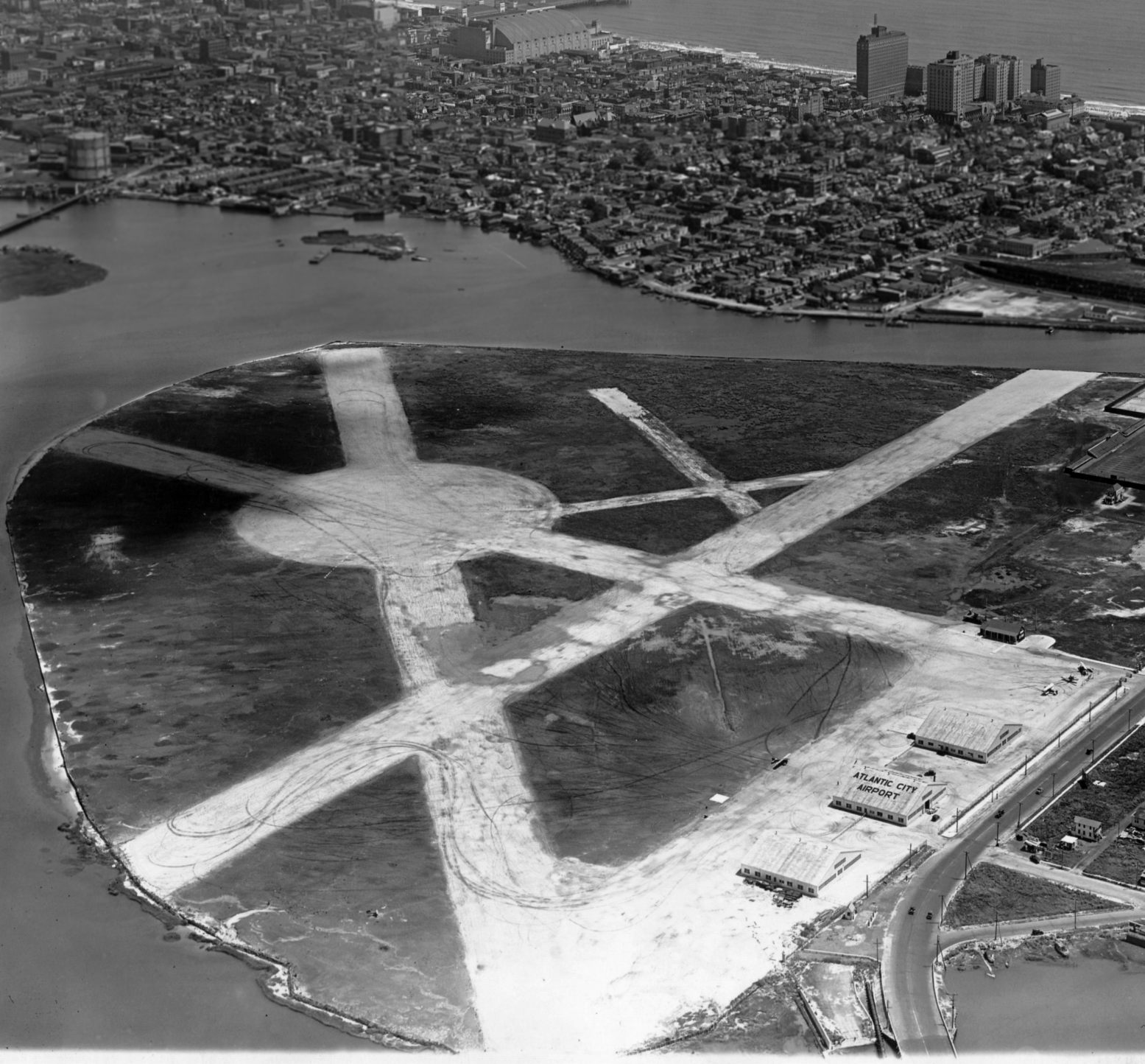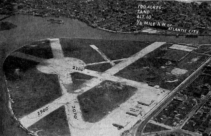 An 8/9/32 aerial view looking east at Atlantic City Municipal Airport (from the Dallin Aerial Survey Collection, courtesy of the Hagley Museum & Library),