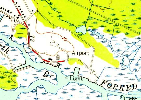 USGS topo maps from the 1940s/50s/60s depicted the “Fish Factory” buildings but did not depict an airfield.