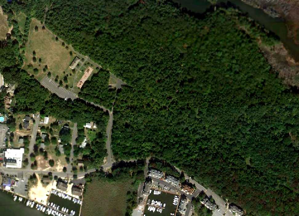 The earliest photo which has been located of Piney Hollow Airfield was an undated aerial view looking north from the 1979 NJ Airport Directory (courtesy of Philip Kineyko).