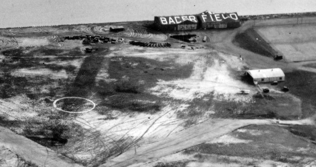 A 1931 aerial view of Bader Field, showing 3 unpaved runways, along with what appeared to be 2 smaller previous runways.