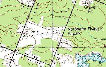 The last aeronautical chart depiction which has been located of Nordheim Flying K Airpark
