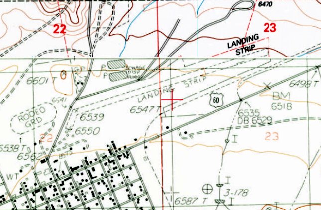 The 1981 USGS topo map depicted the Transwestern #8 Airfield as having a single runway, labeled simply as “Landing Strip”.
