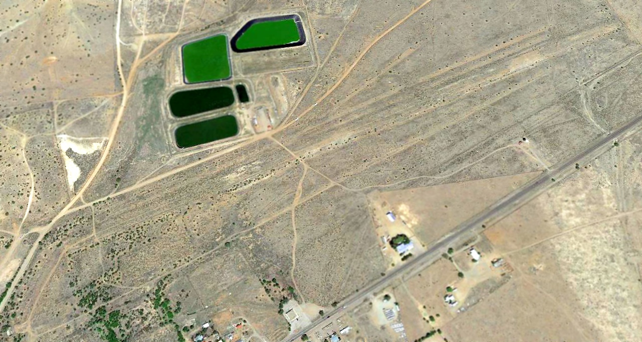 A 2017 aerial view looking northeast at the site of the original Magdalena Municipal Airport showed the unpaved runway remained recognizable.