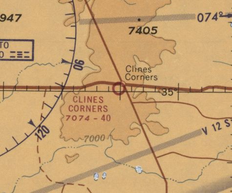 Matt Franklin observed that this chart depicted Clines Corners Airport on the “wrong north side of the interstate, but I think this was a cartography error.”