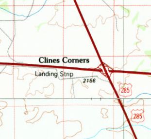 The site of Clines Corners Airport is located southwest of the intersection of Interstate 40 & Route 285.