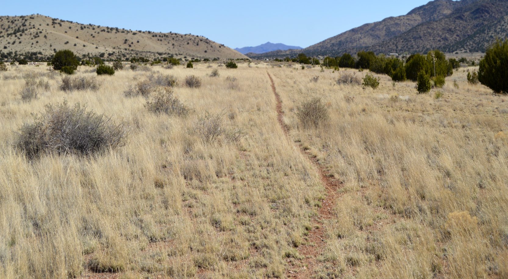 A 4/8/20 photo by Fred De Guio looking east from midfield along the former Runway 6 of the original Magdalena Municipal Airport.