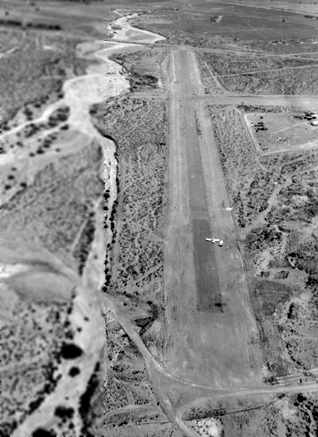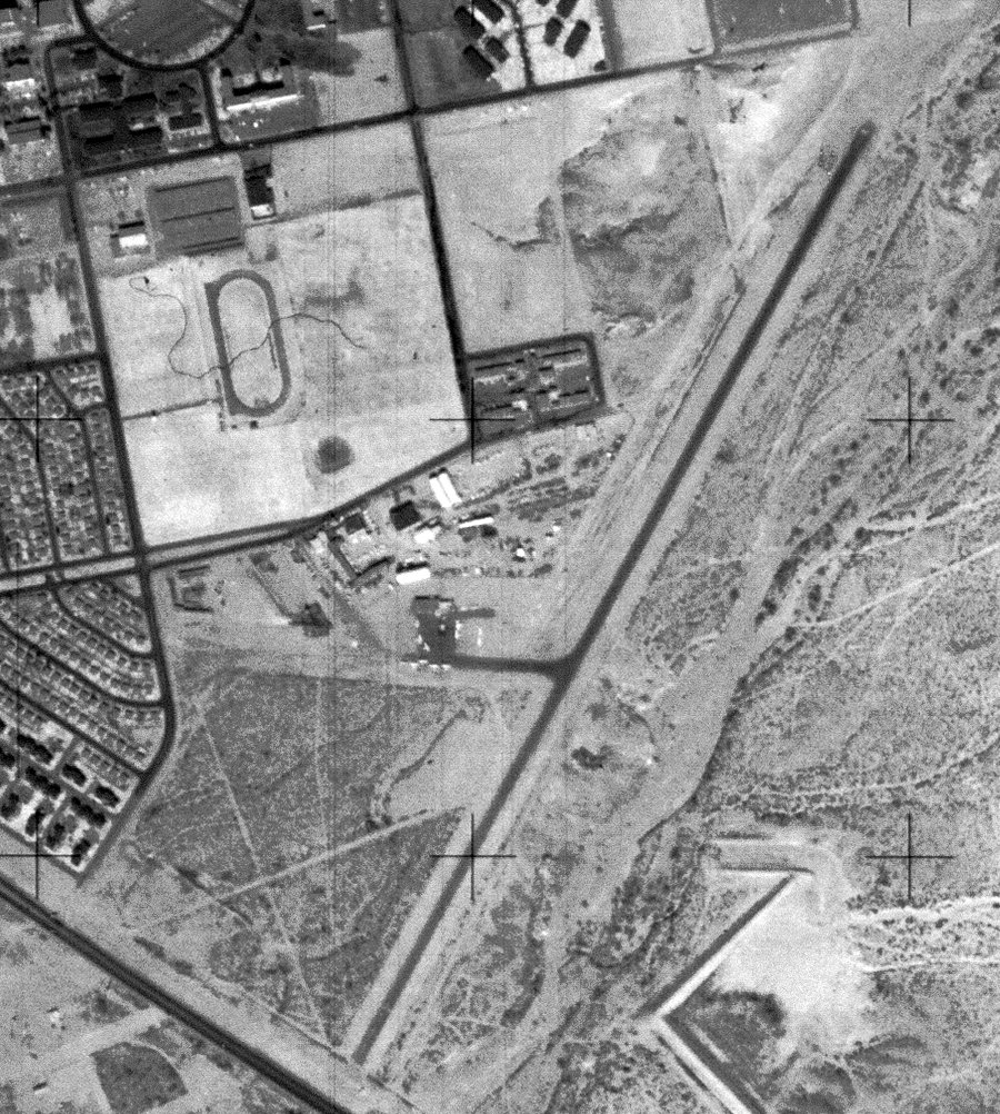 A 1984 aerial photo showed pecan groves covering the site of the Mesquite Airfield.