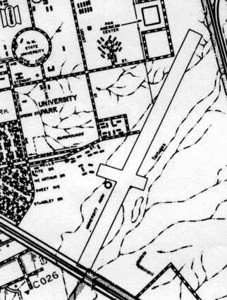 annotated by Jonathan Westerling to show the location of the 3 runways & hangar.