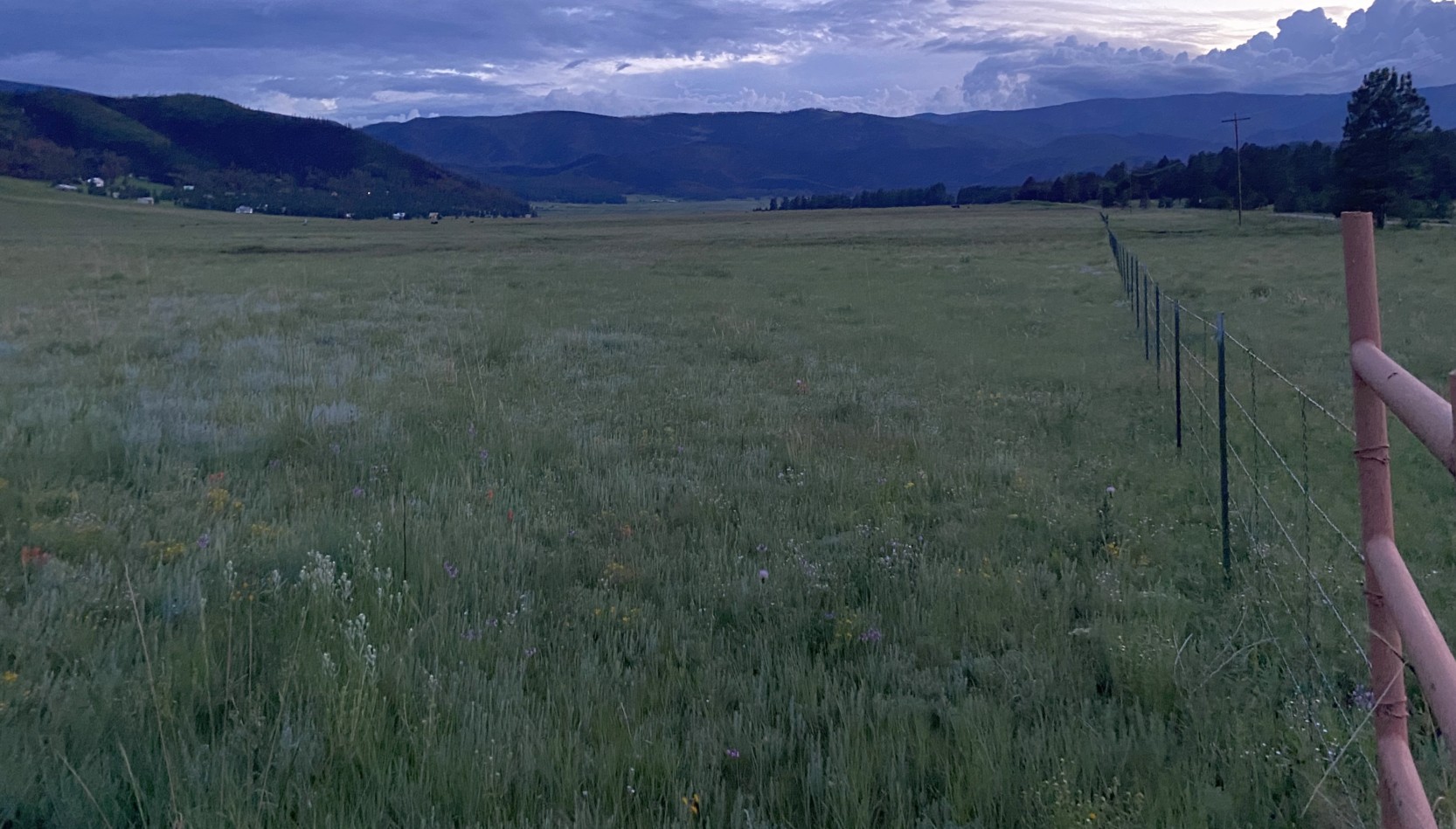 An 8/13/22 photo by Matt Franklin looking southwest along the former Pendaries Village Airfield 4,100' runway, toward Rociada.