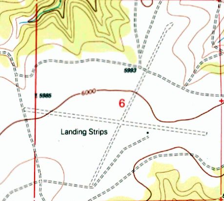The 1987 USGS topo map depicted a single northeast/southwest “Landing Strip”.