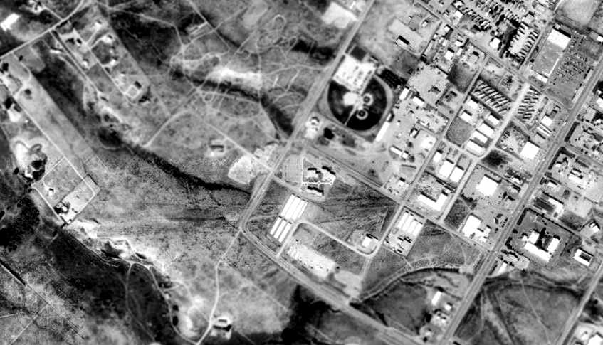 As can be seen in the 1997 USGS aerial photo, the site of Zia Field has been covered with residential streets & houses.