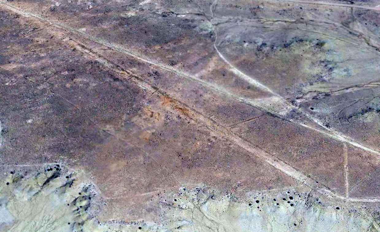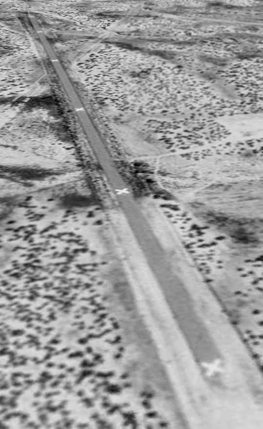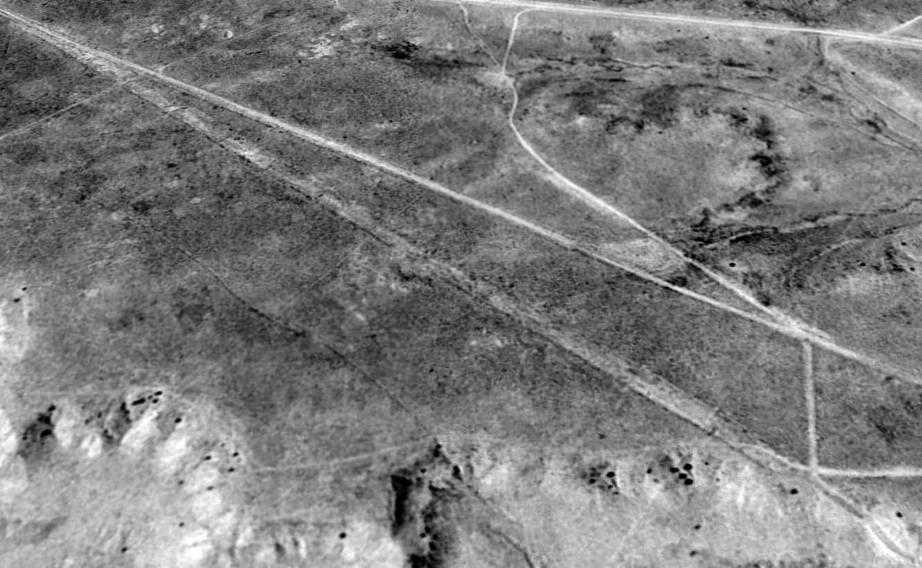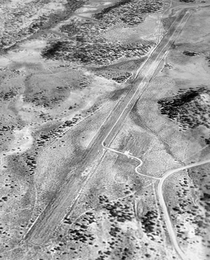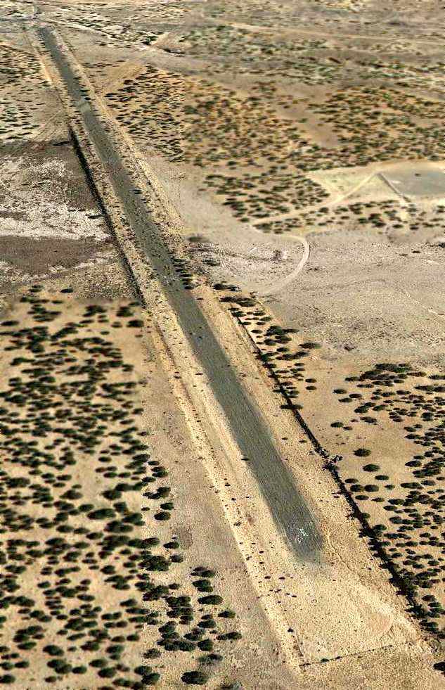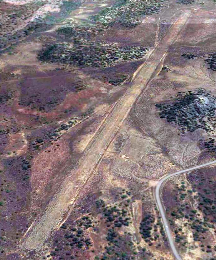 The road pictured that clips the northwest corner of the runway was passable for a quarter of a mile & then turned to into a wash basin.