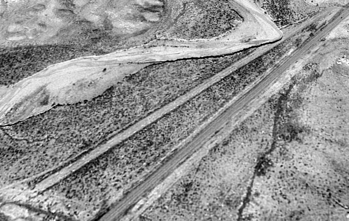 A 1997 USGS aerial photo of the Greater Grants Airport site showed that much of the former east/west runway & its parallel taxiway still remained intact.