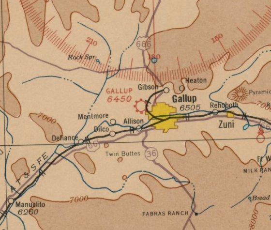 The original airport for the town of Gallup were located to the northwest, just east of Allison.