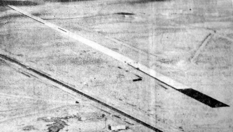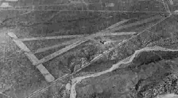 as a 1952 aerial photo showed what appeared to be the remains of an unpaved northeast/southwest runway, surrounded by a large oval track.