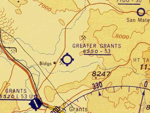 The last aeronautical chart depiction which has been located of the Greater Grants Airport as an active airfield