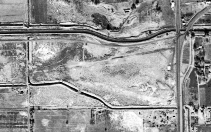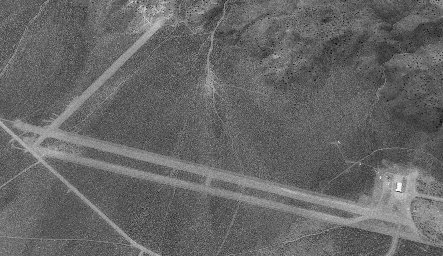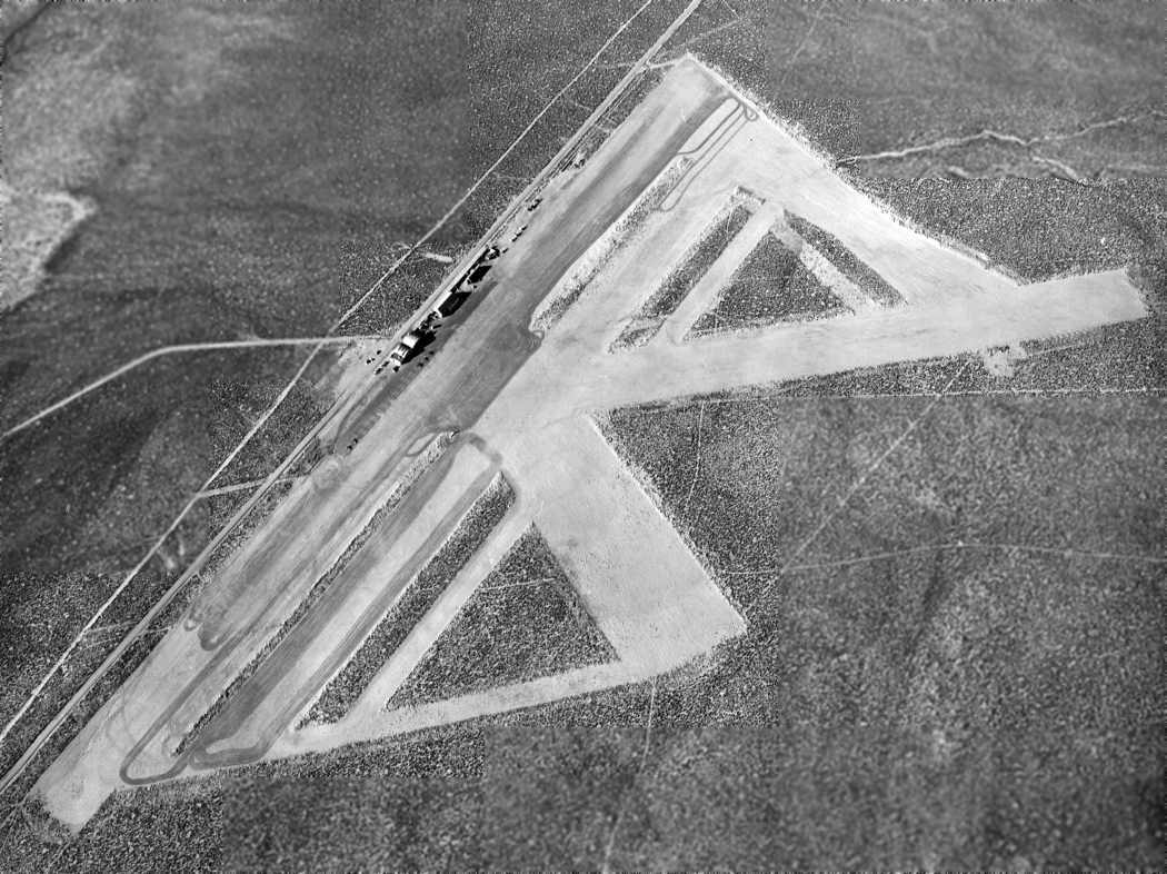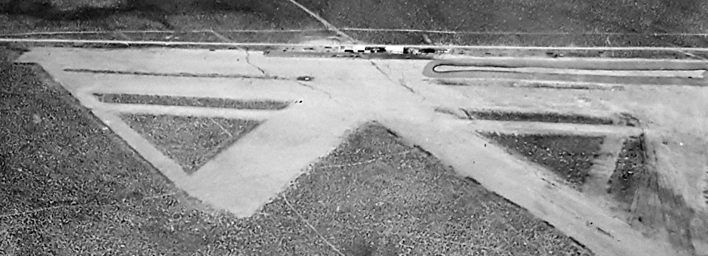 A 1994 USGS aerial view looking northeast at the site of Sutcliffe Airfield showed the barely-discernible trace of 2 runways.