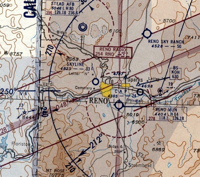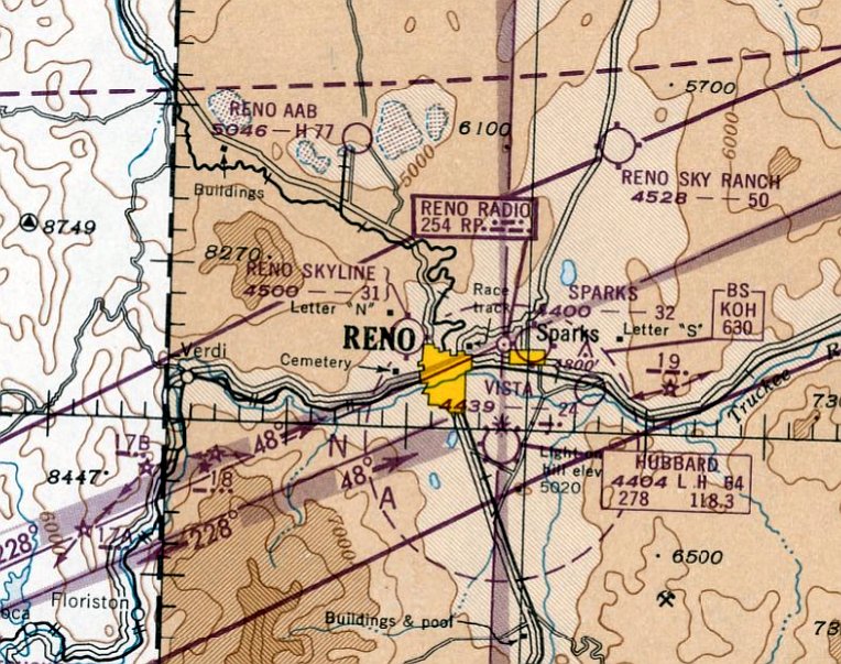 The earliest depiction which has been located of Reno Skyline Airport was on the February 1949 Reno Sectional Chart.