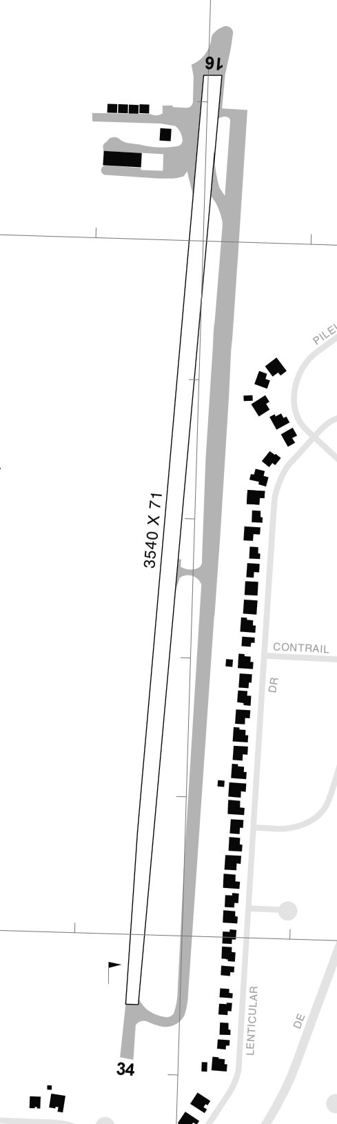 It depicted Skyline Airfield as having a single east/west paved runway, with 2 small buildings on the south side.