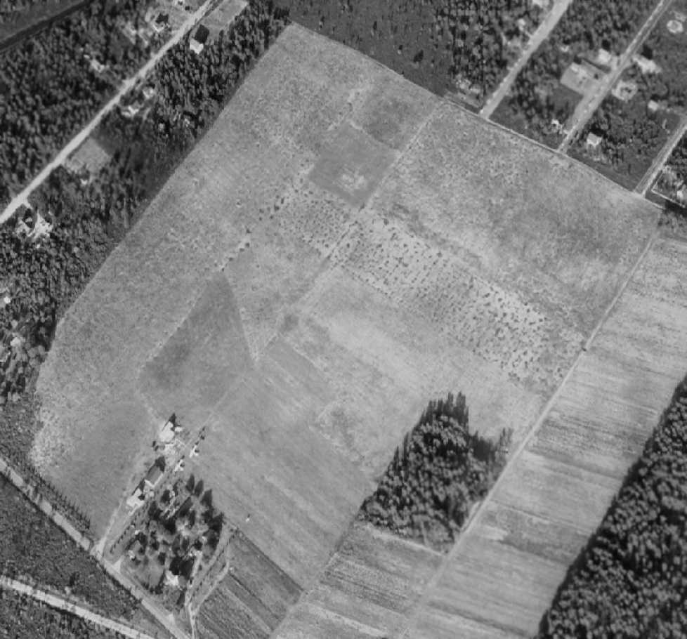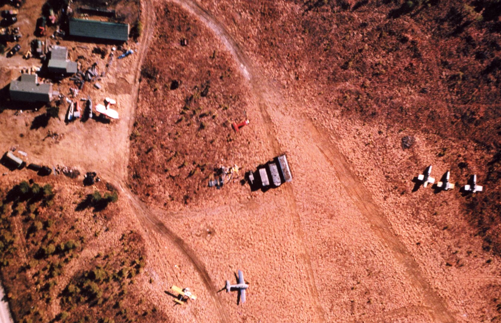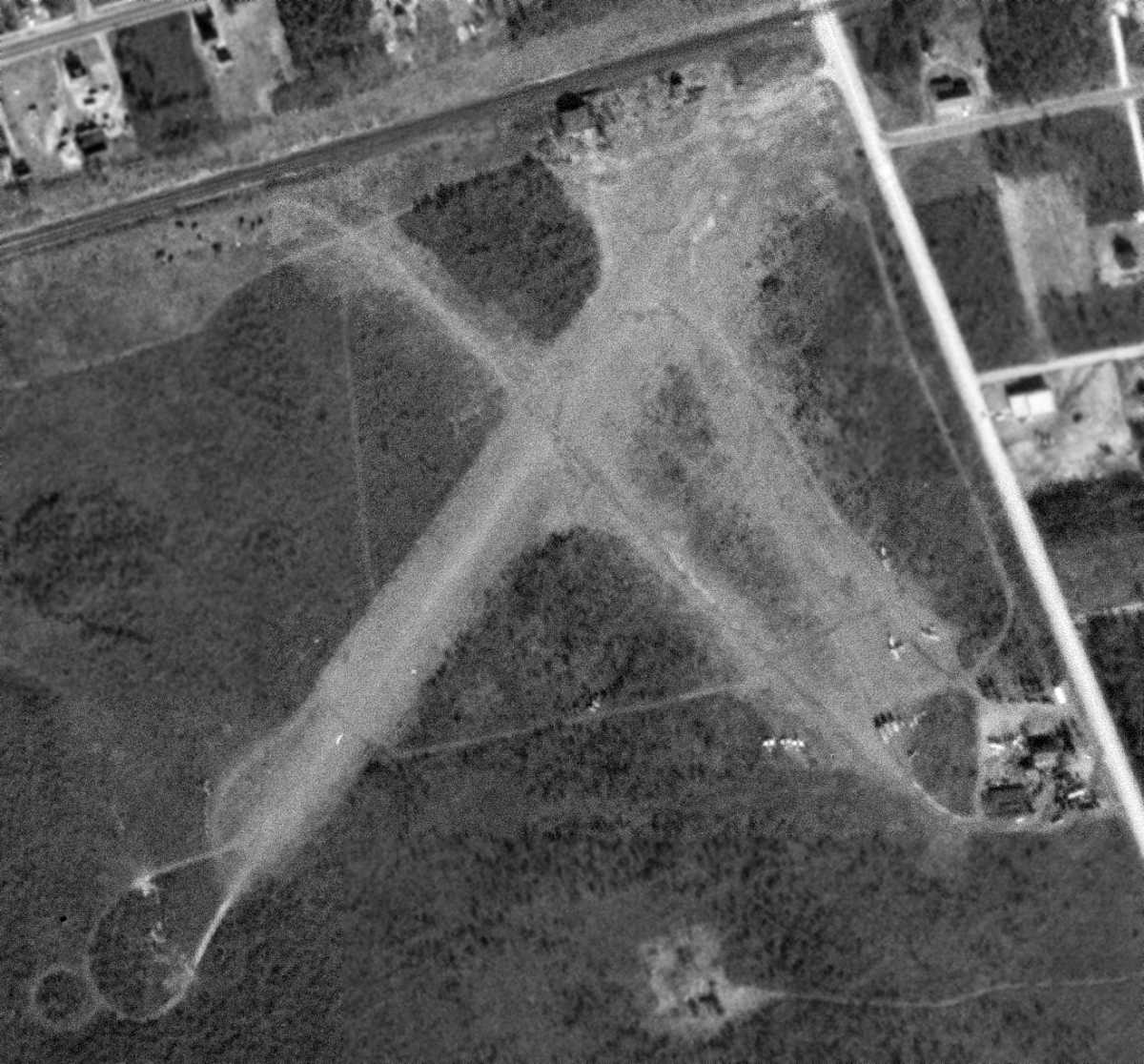 A 1980 aerial view showed that one former hangar still remained standing on the north side of the field.