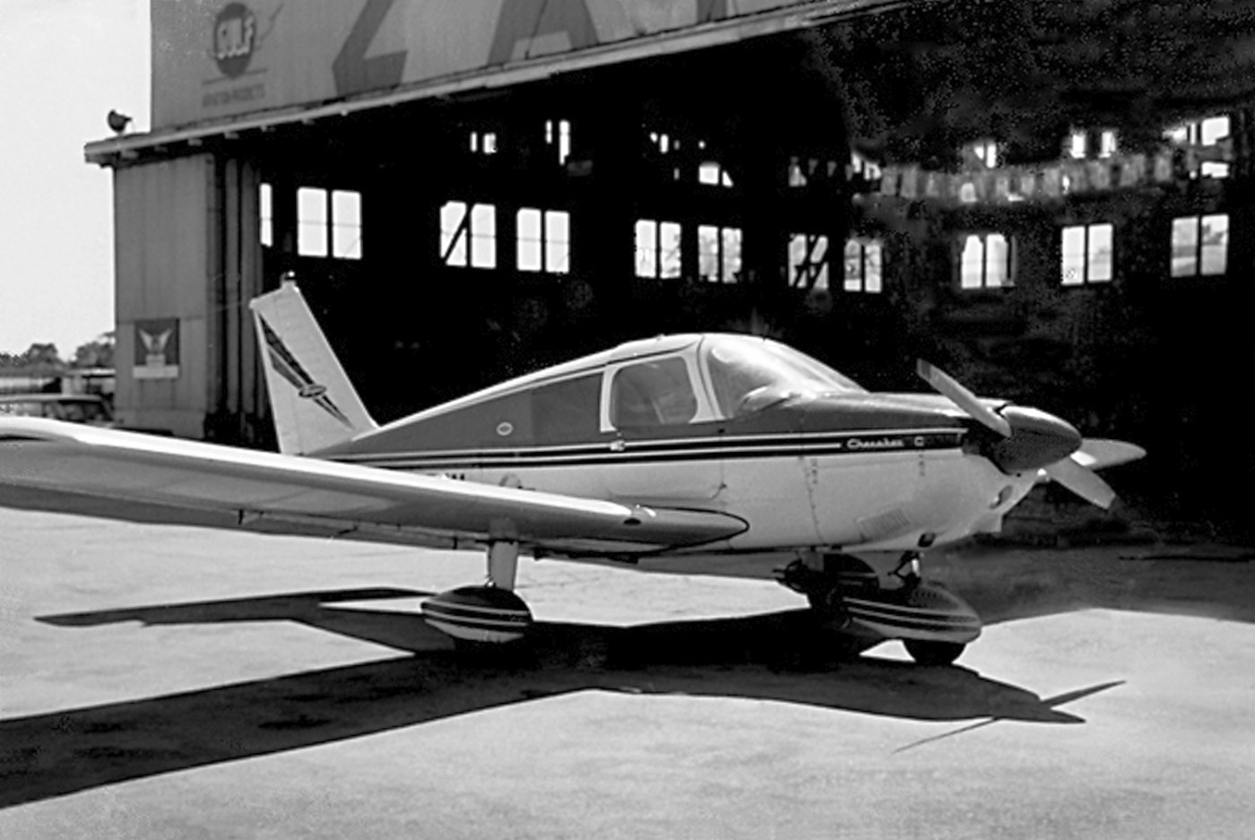 A circa 1972-74 photo by James Kovacsik (courtesy of Bob Mott) of a Deer Park Airport hangar.
