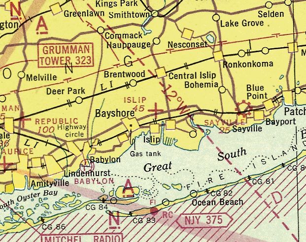 The 1935 Regional Aeronautical Chart depicted Islip as an auxiliary airfield.