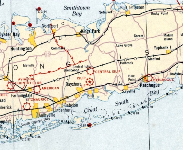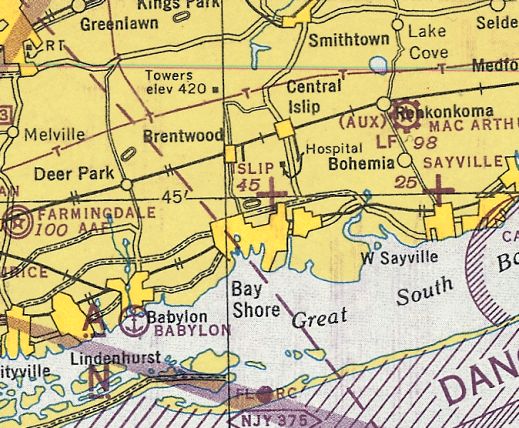 The original airport for the town of Islip was located just north of the town along Route 111.