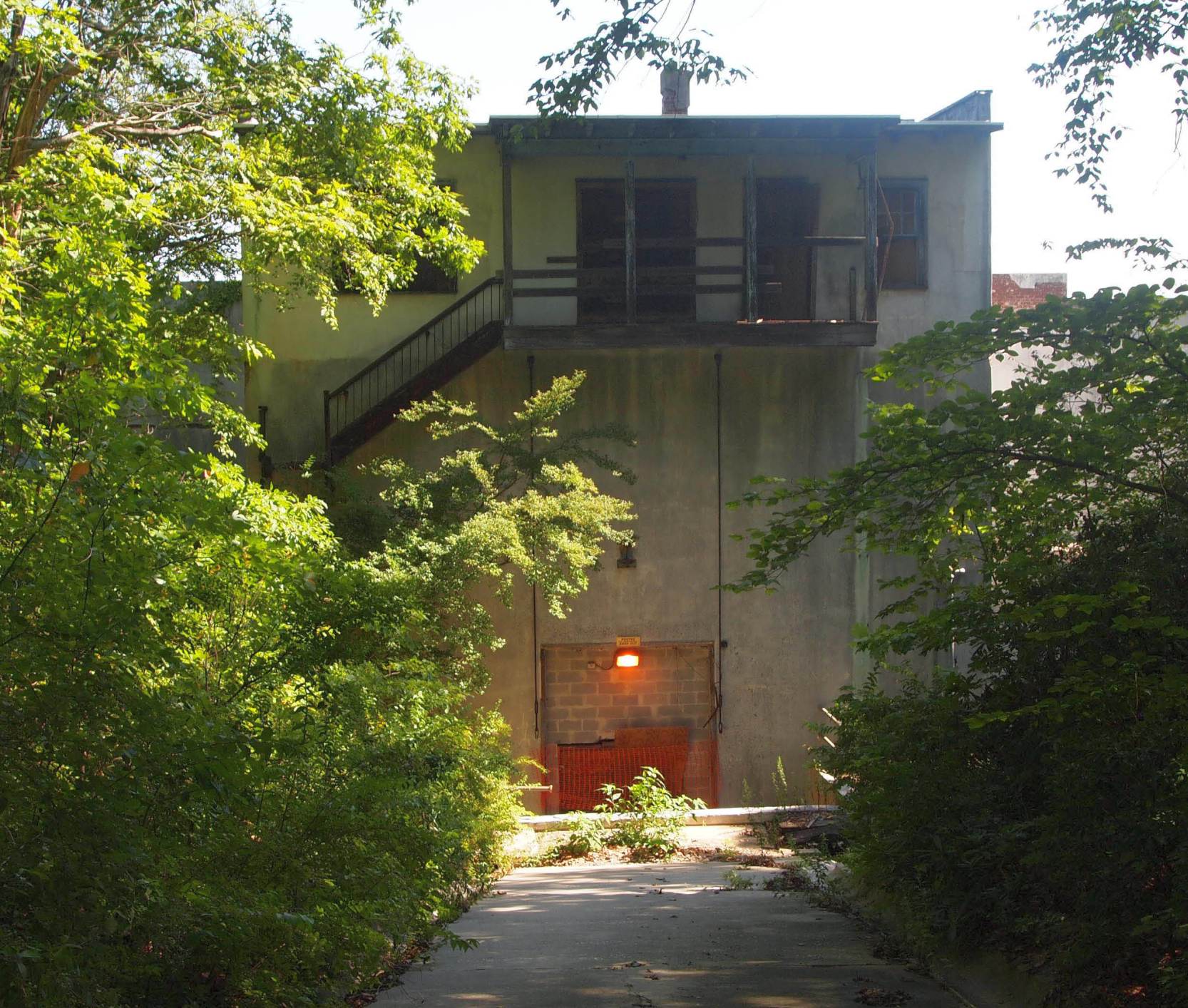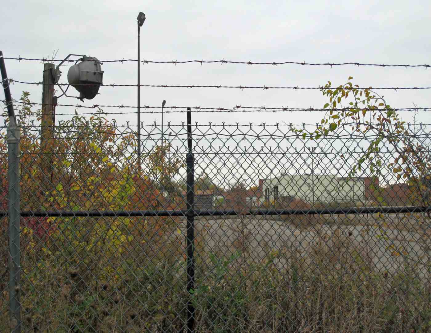 All other buildings are still intact as well as the double fence & original lights.
