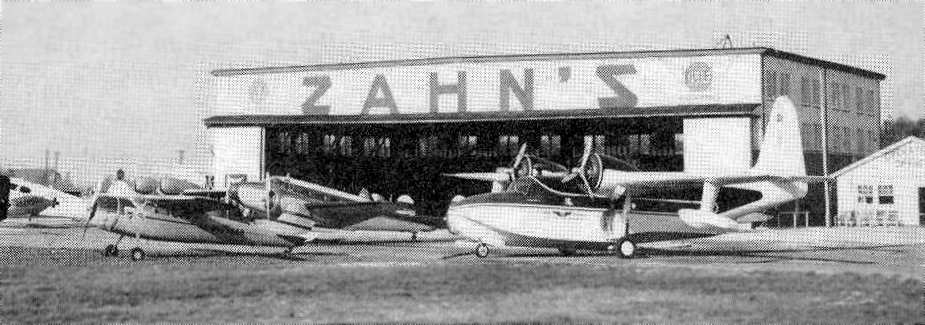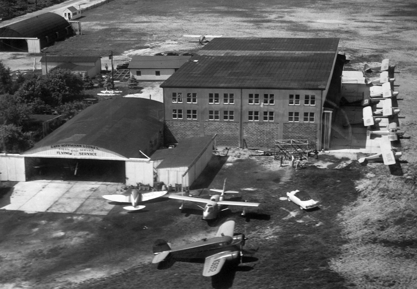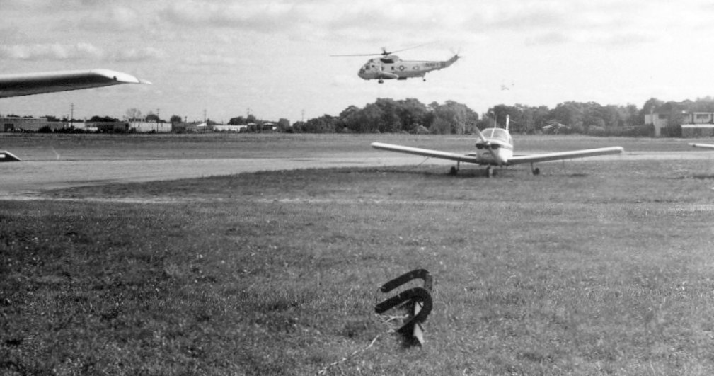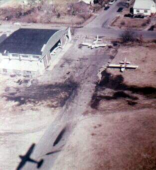 with the Mid Island Air Service hangar across the field, and the Edgewood Hospital main building in the background.