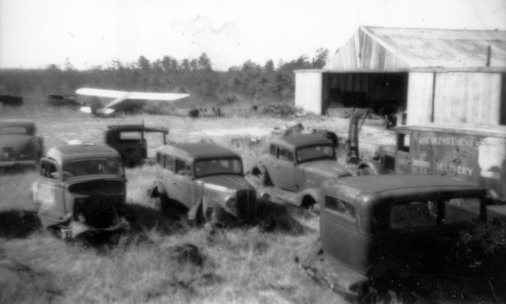 A circa 1955 photo by Frank Gudaitis of a variety of aircraft wrecks at Bender-Brentwood Airport (courtesy of Bob Mott).