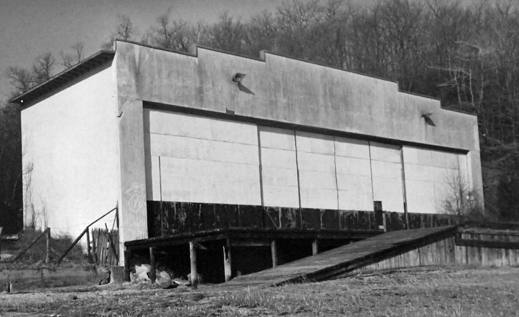 An undated photo looking west at the Vanderbilt seaplane hangar (courtesy of Chris Maione).