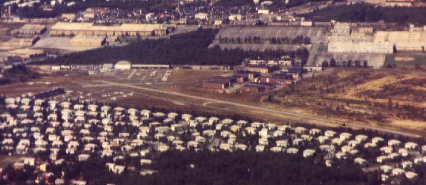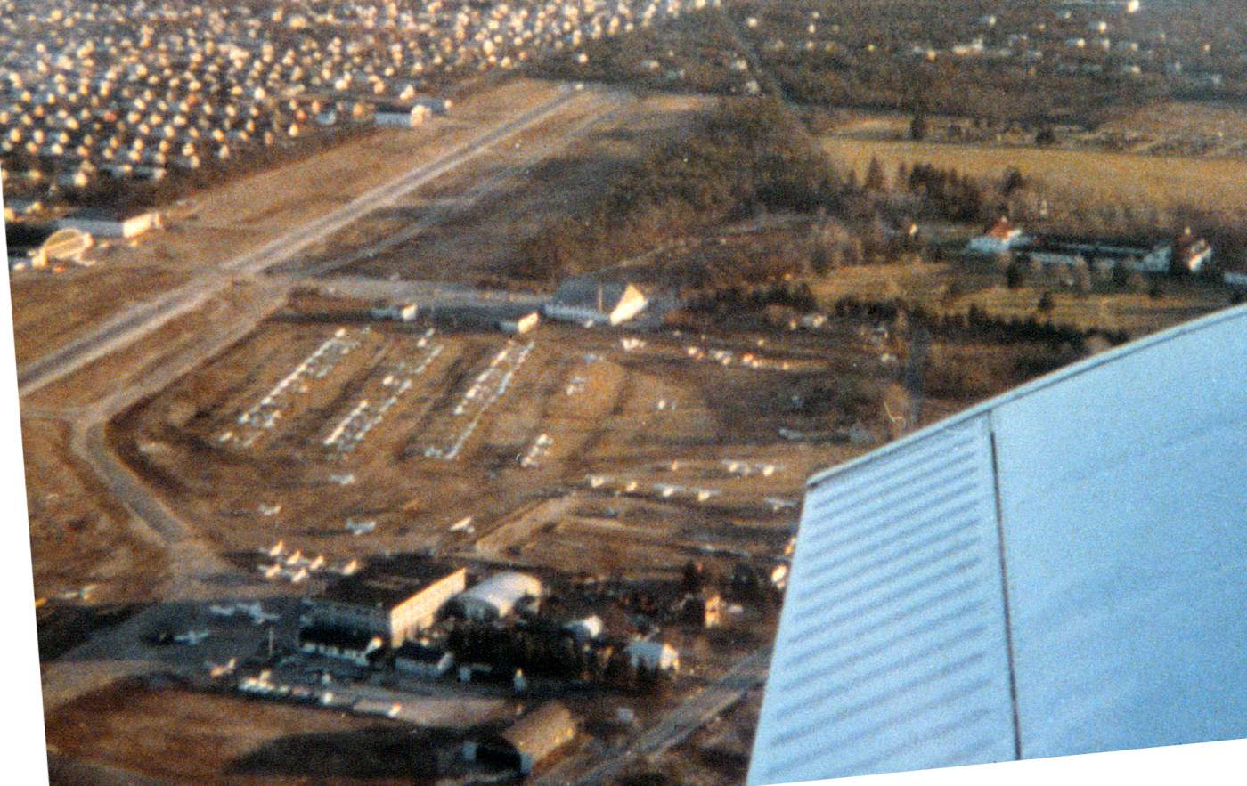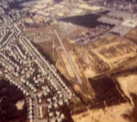 An aerial view by Lonnie McLaughlin of Deer Park Airport in 1972 (note the X'ed-out crosswind runway).