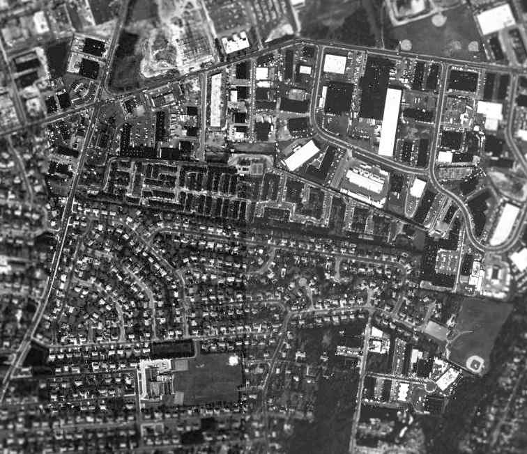 As seen in the 1994 USGS aerial photo, the site of Deer Park Airport had been thoroughly built over,