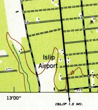 It depicted Islip as an irregularly-shaped grass field with a single hangar on the southeast side.