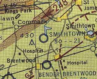 Central Islip / Bender-Brentwood Airport was not depicted on the November 1942 NY Sectional Chart (courtesy of Ron Plante).
