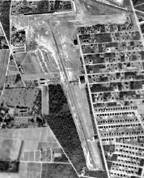 The last aerial photo which has been located of Bender-Brentwood Airport was a 1955 aerial view looking south (courtesy of Bob Mott).