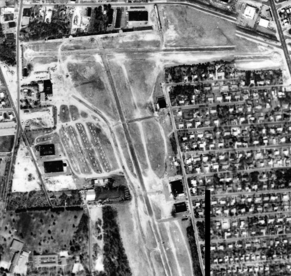 The earliest aerial photo which has been located of Bender-Brentwood Airport was a 1/1/51 aerial view looking north (courtesy of Bob Mott).
