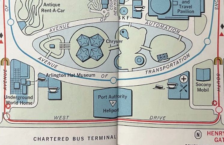 The earliest map depiction which has been located of the Worlds Fair Heliport was on a 1964 map (courtesy of Kevin Walsh), which labeled it “Port Authority Heliport”.