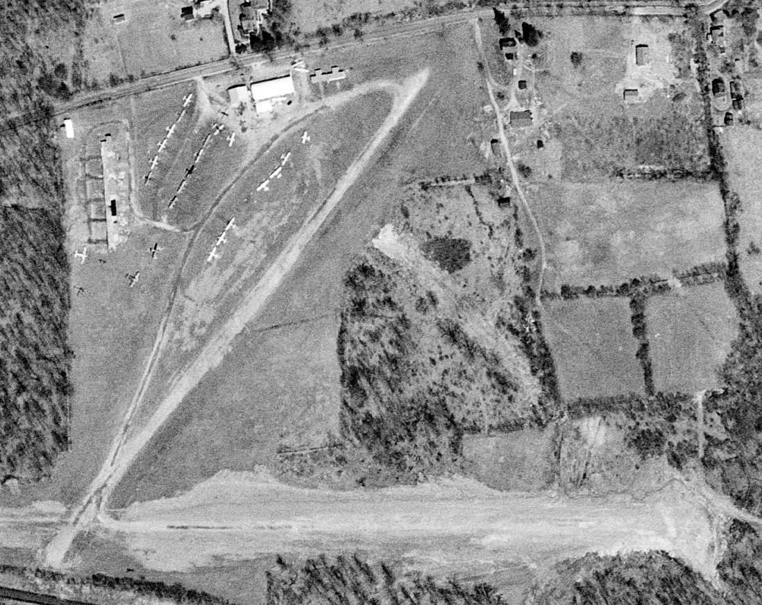 A 1953 aerial photo showed no obvious sign of an airfield, with several buildings having been constructed over various portions of the property.