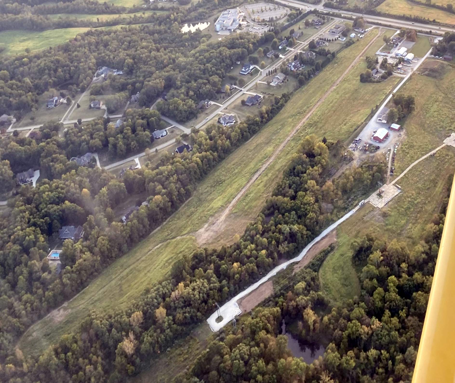 A 9/14/20 photo by Rex Ricks looking southwest along the former Wright Field Runway 23, with the Air Force Museum buildings in the background.