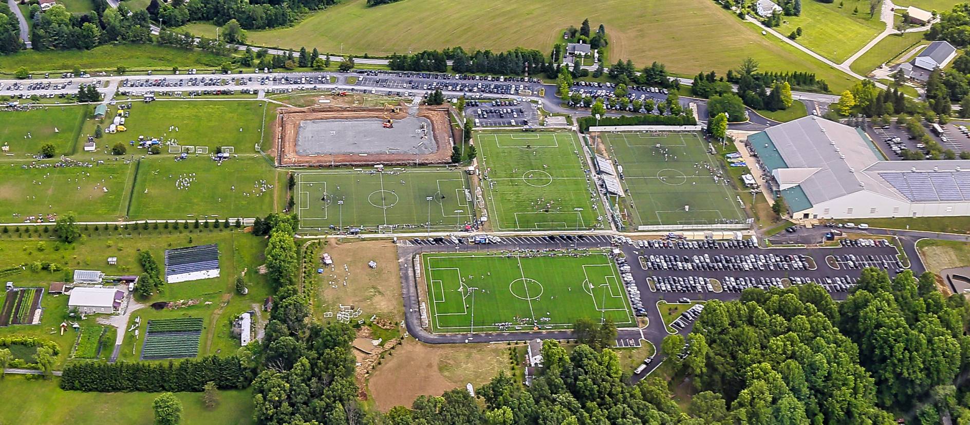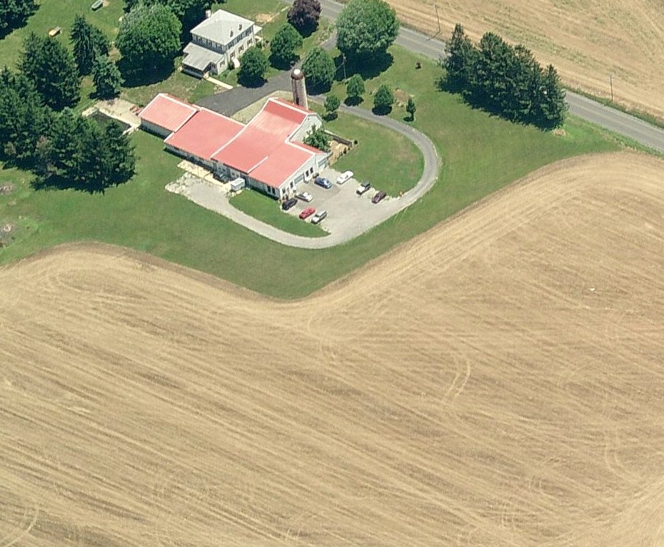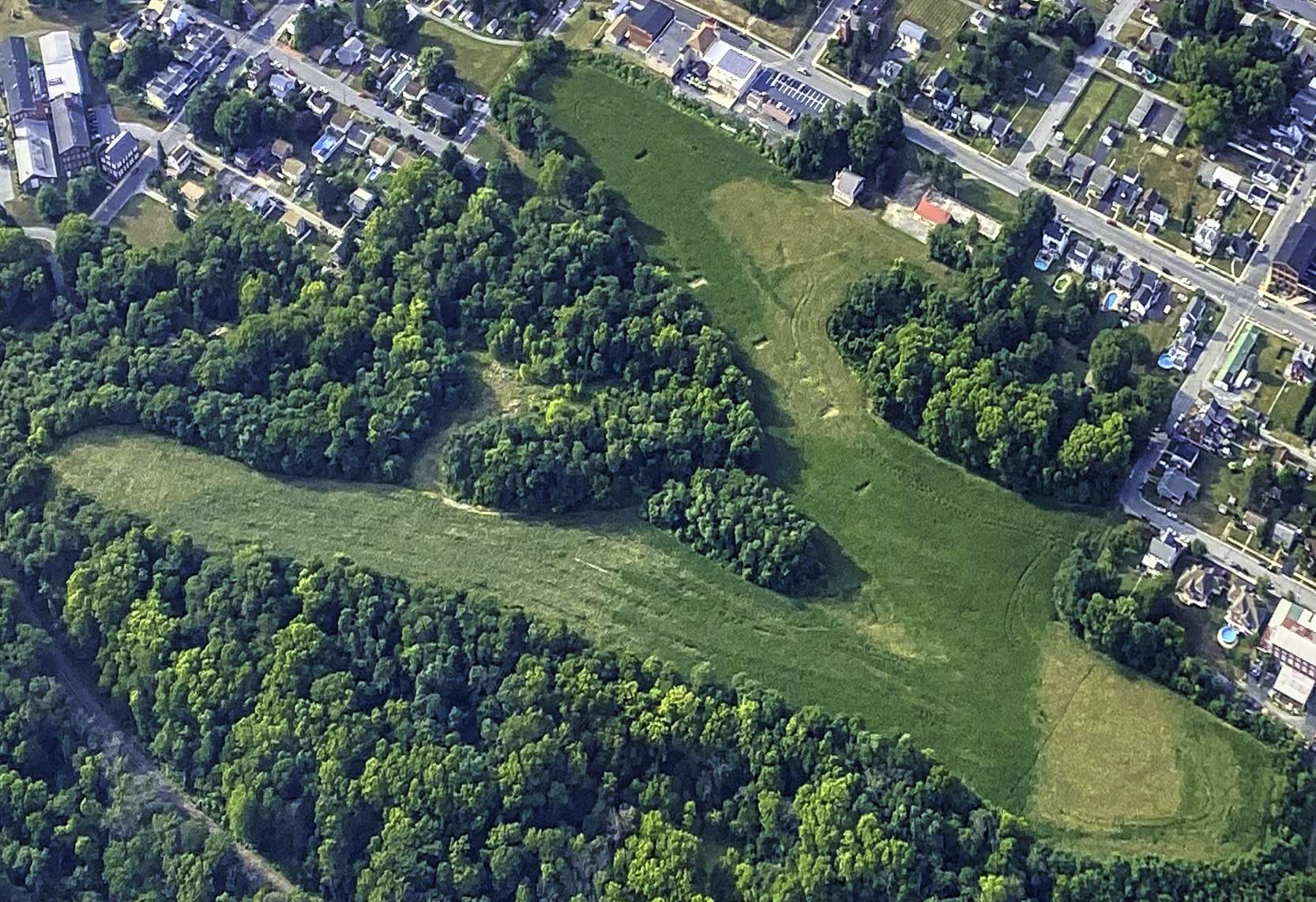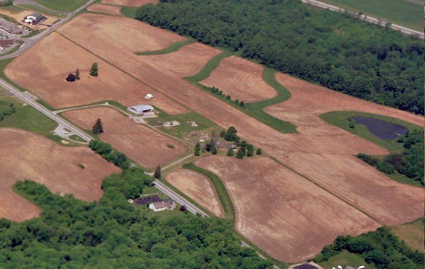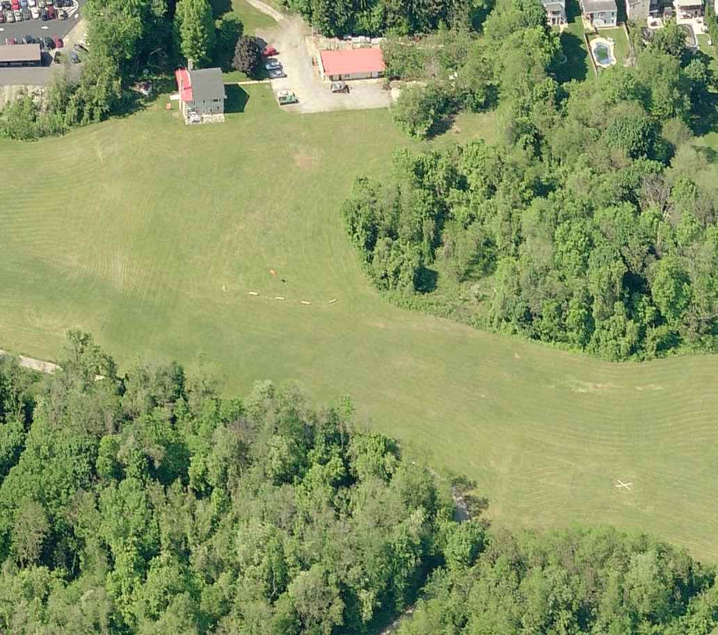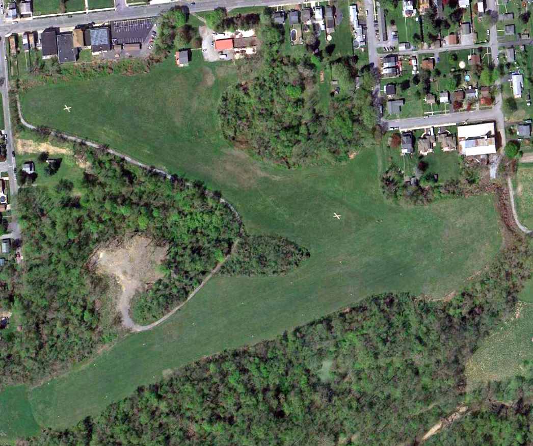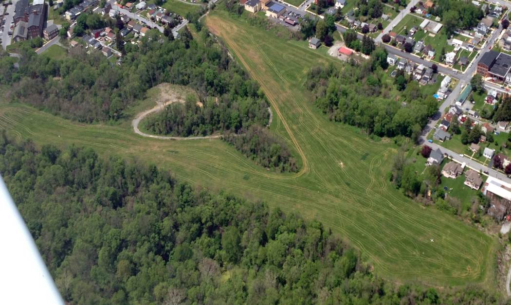 A 5/16/00 aerial view looking west at Stoltzfus Field (from the Dallin Aerial Survey Collection, courtesy of the Hagley Museum & Library)