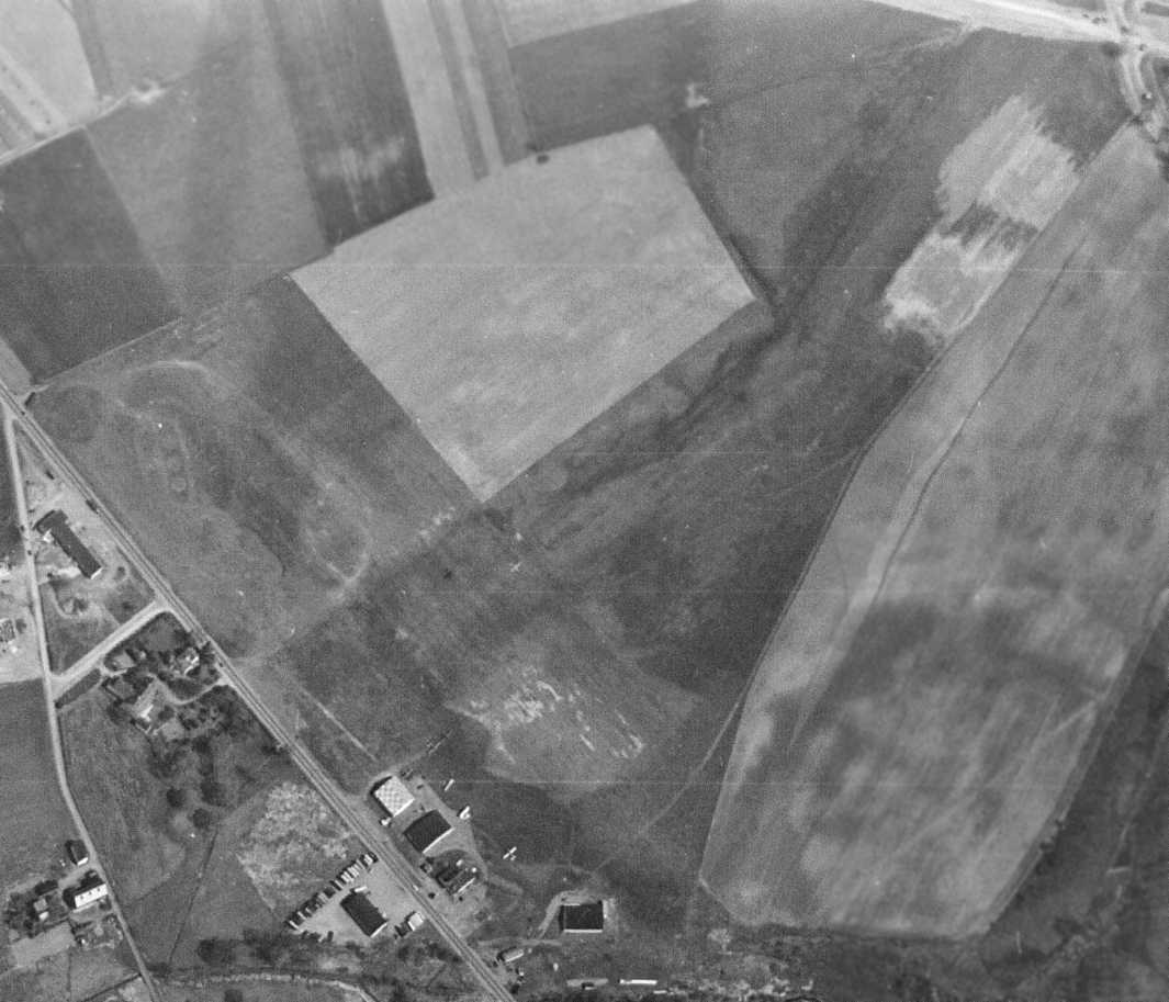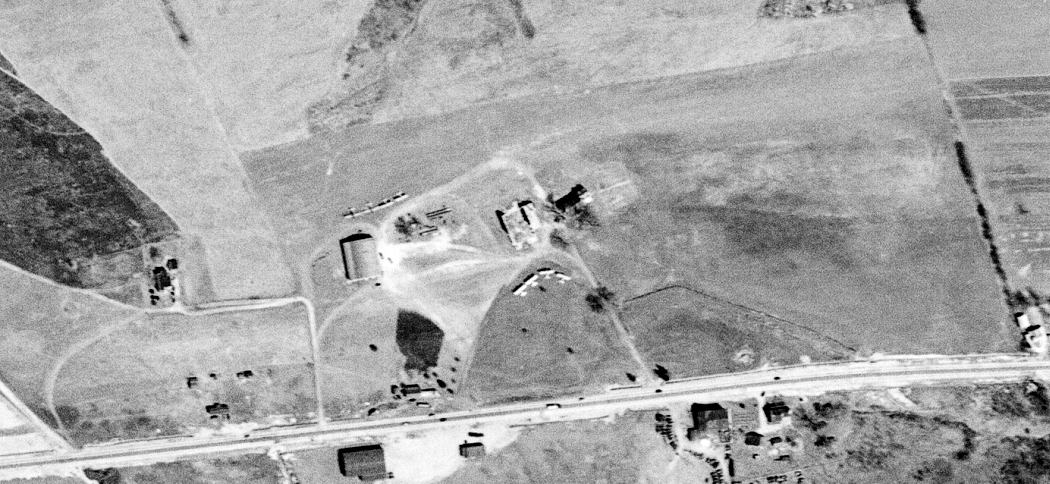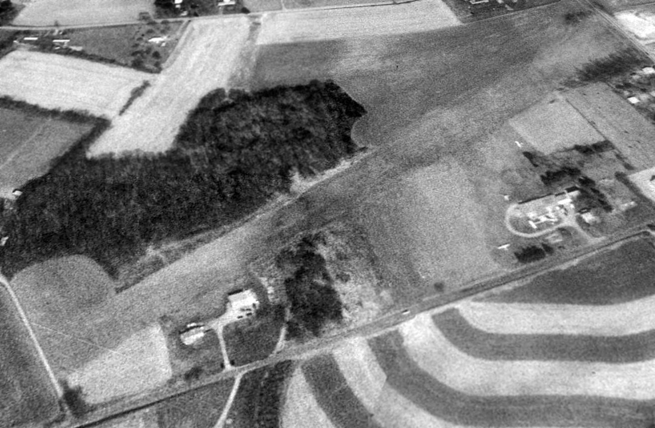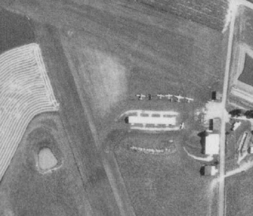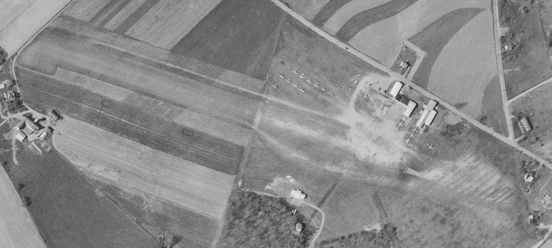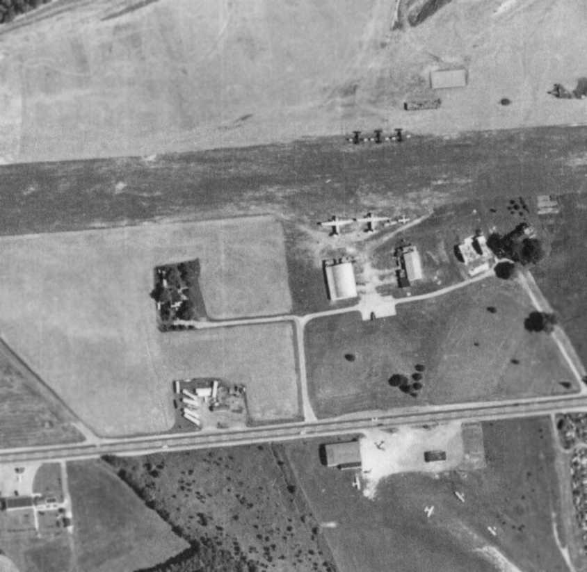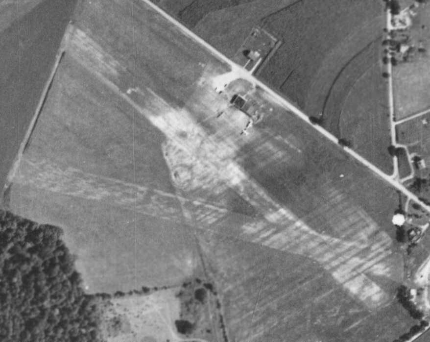 A 1950 aerial view did not yet show any sign of an airfield at this location,