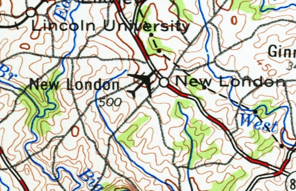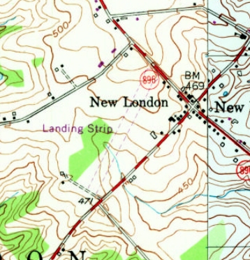 Ironically the 1972 USGS topo map depicted New London Airport with a 4-engine swept-wing aircraft symbol -