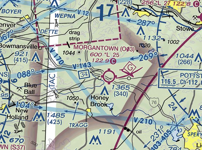 which depicted Morgantown as a public-use airport having a 2,500' unpaved runway.