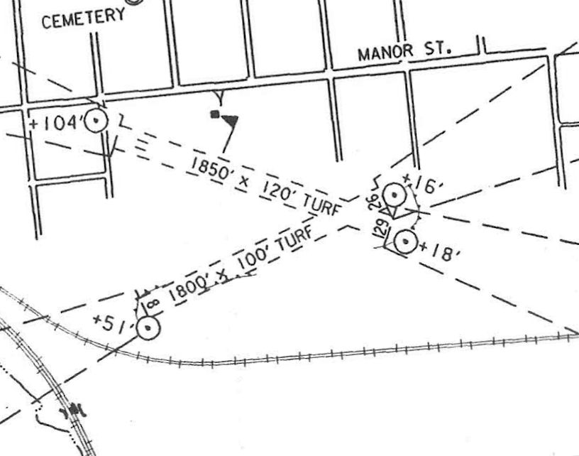 The 1971 USGS topo map showed that McGinness Airport had gained a crosswind runway, oriented northwest/southeast.