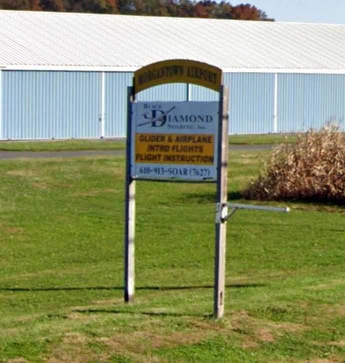 A 2019 photo of the sign for Morgantown Airport's Black Diamond Soaring.