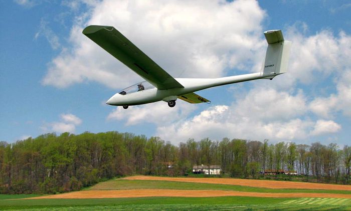 A pre-2025 photo of a Black Diamond Soaring glider at Morgantown Airport.