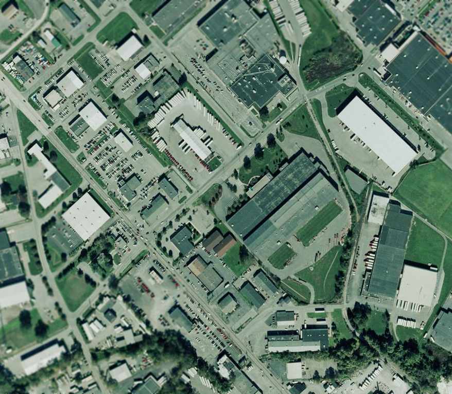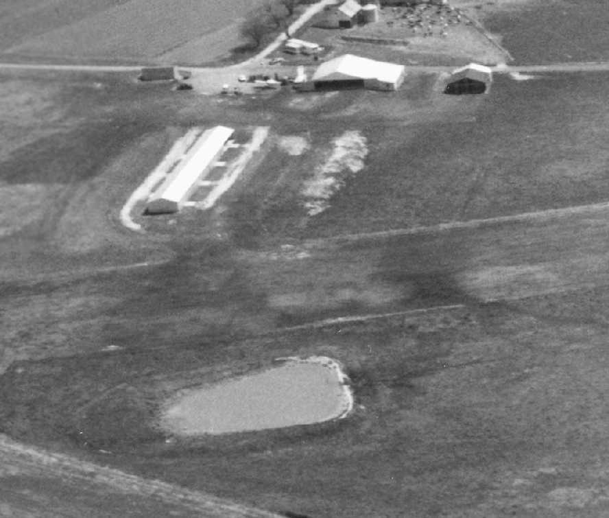 The 2 Quonset huts on the north side of McGinness Airport remained standing in a 1992 aerial view.
