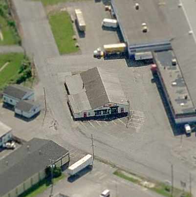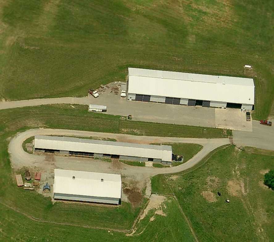 A circa 2006 aerial view looking west at the Stoltzfus hangar & other buildings.