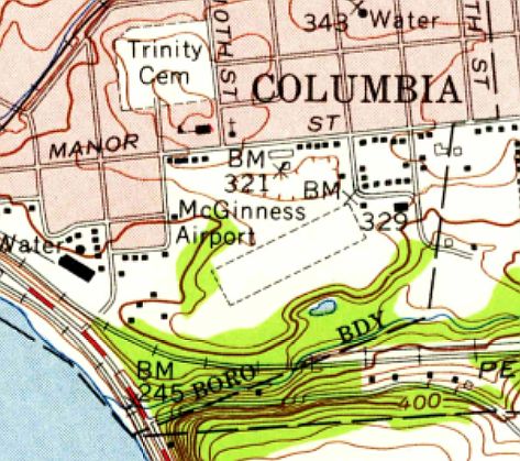 The earliest depiction which has been located of McGinness Airport was a 4/21/51 USGS aerial view.